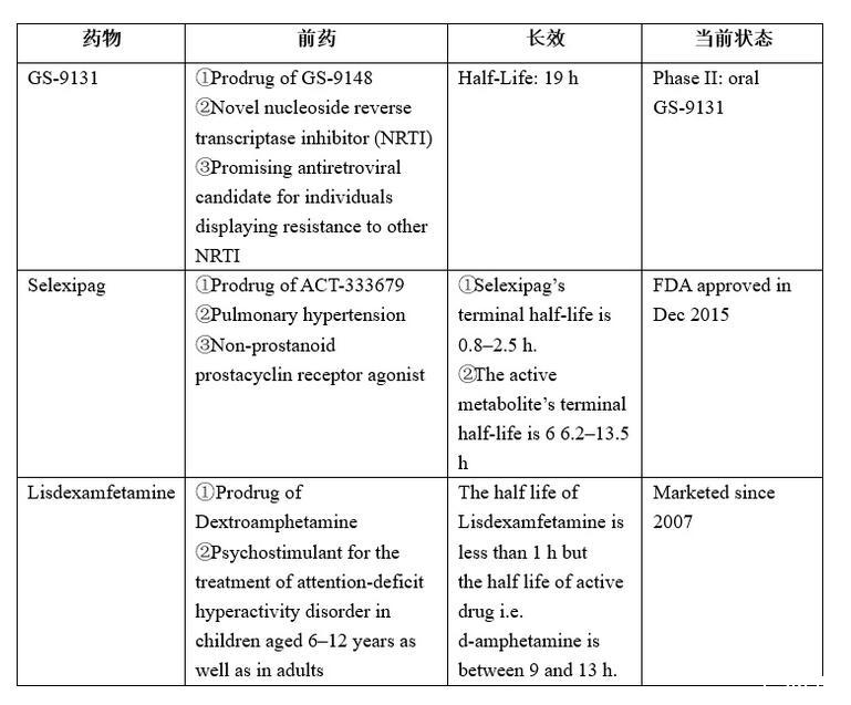 前體藥物是活性藥物分子的無活性或活性較低的生物可逆轉(zhuǎn)衍生物,在產(chǎn)生藥理作用之前,需要經(jīng)過酶或生物轉(zhuǎn)化。前藥策略提高了許多分子的性能,它有助于增強口服給藥后的藥物吸收以及穩(wěn)定性。前藥在市場中一直占據(jù)著一席之地,而且發(fā)展迅速,以下為FDA批準的一些長效前藥:
