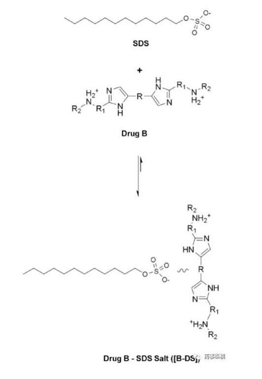 藥物B與SDS成鹽示意圖