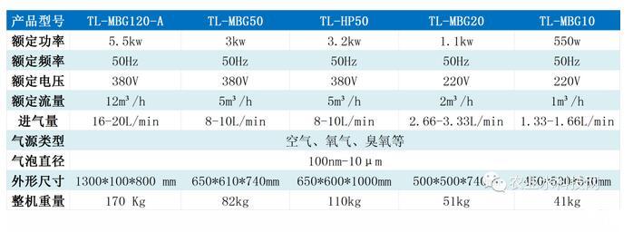 同體積氣體形成的氣泡比表面積大,傳質效率高。氣泡的體積和表面積的關系可以通過公式表示。氣泡的體積公式為V=4π/3r3,氣泡的表面積公式為A=4πr2,兩公式合并可得A=3V/r,即V總=n·A=3V總/r。也就是說,在總體積不變(V不變)的情況下,氣泡總的表面積與單個氣泡的直徑成反比。根據公式,10微米的氣泡與1毫米的氣泡相比較,在一定體積下前者的比表面積理論上是后者的100倍。空氣和水的接觸面積就增加了100倍,各種反應速度也增加了100倍。
