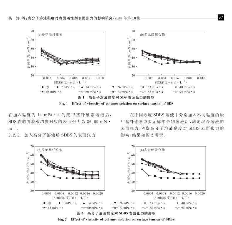 高分子溶液黏度對表面活性劑表面張力的影響研究