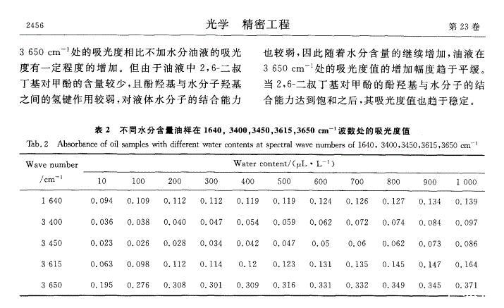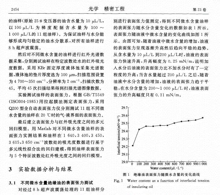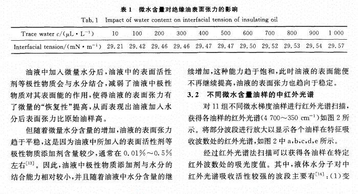 含微水絕緣油表面張力的中紅外光譜檢測