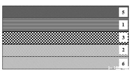 將本實(shí)施例的BOPP薄膜用于制備熱復(fù)合基材,通過熱復(fù)合功能層與共聚丙烯材料或/和聚乙烯材料復(fù)合,具體地,本實(shí)施例是與石頭紙蜂窩板5熱復(fù)合,復(fù)合后的結(jié)構(gòu)請(qǐng)參閱圖3,復(fù)合完成后,測試復(fù)合效果。復(fù)合方法包括以下步驟:首先在BOPP薄膜的可印刷表層上直接進(jìn)行耐溫油墨印刷,其中最后一道為耐溫保護(hù)光油,形成油墨層6,然后輕度熱壓使薄膜與表面達(dá)到一定溫度的石頭紙蜂窩板直接熱壓復(fù)合,熱復(fù)合工藝條件如下:溫度為130℃,封合時(shí)間為2s,熱壓壓力為8kg/cm2